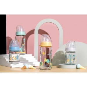 • 5cm寬口徑pp硅膠奶瓶 新生嬰兒帶手柄防脹氣